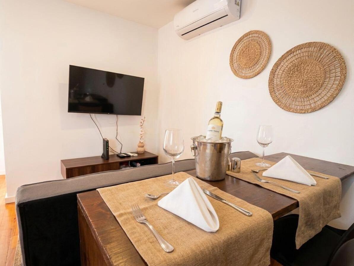 Este apartamento de 1 quarto com ar condicionado inclui uma cozinha, uma área de estar e uma televisão de ecrã plano.